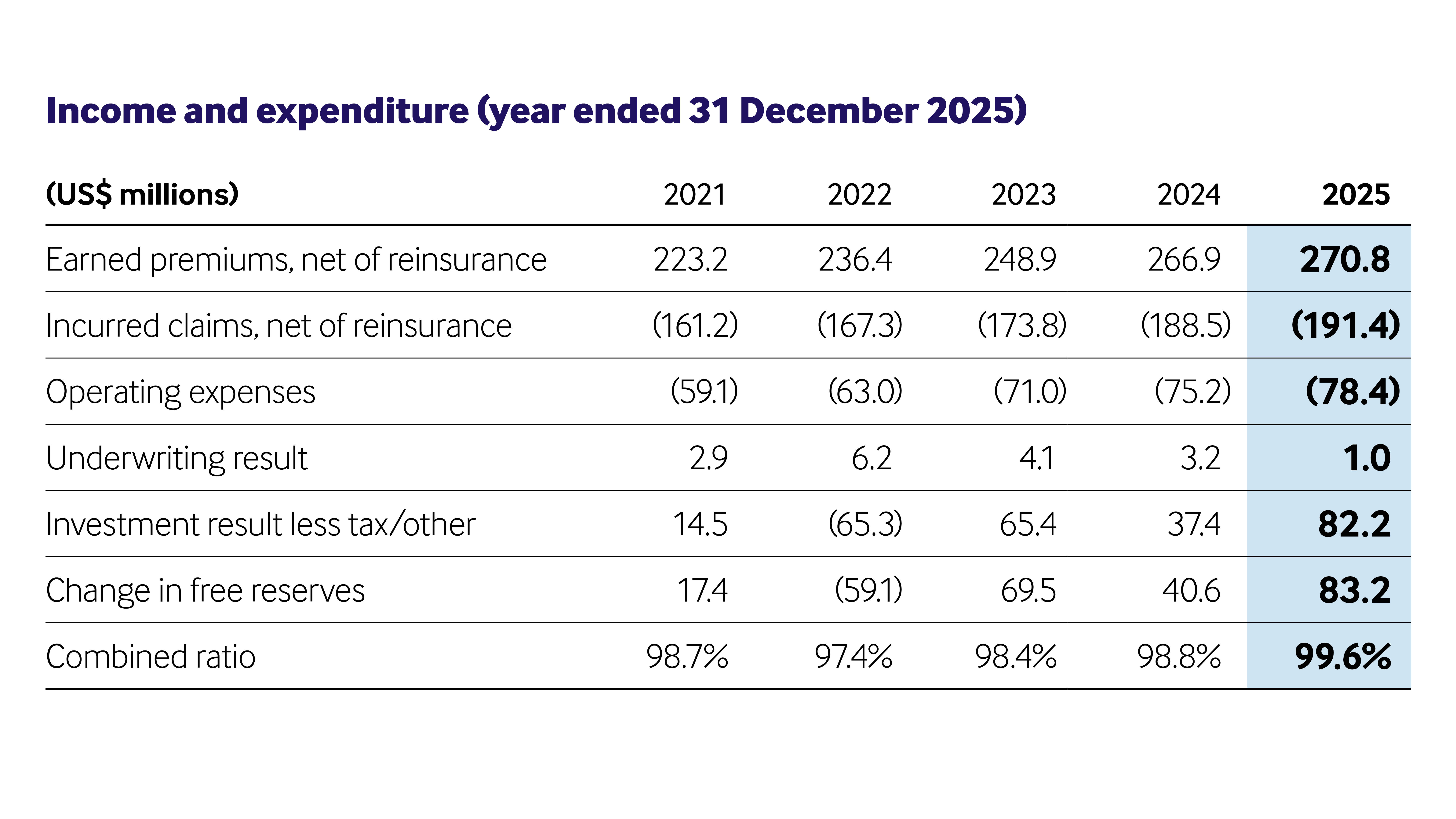 - Earned premiums, net of reinsurance US$ 270.8m (2024: US$ 266.9m)