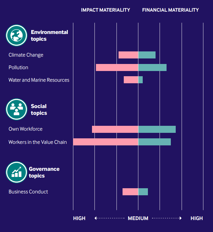 In early 2024, the Club carried out a Double Materiality Assessment (DMA) to meet CSRD requirements. This built on earlier materiality assessments completed in 2022 and 2024 whilst introducing a mandatory dual perspective that considers how external ESG factors financially impact the Club's activities and how the Club’s activities affect the environment and society. Around 100 high-impact ESG topics were reviewed, leading to the identification of six key material areas to the Club and its value chain: